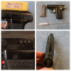 Es handelt sich hierbei um eine voll funktionstüchtige Reck P10 Start-Pistole/Gaspistole mit dem goldenen Abzug. Kal.8mm Beschluss: 1971 in Mellrichstadt. Beste "Made in Germany" Qualität welche heute nicht mehr hergestellt wird. Klein handlich aber auch sehr laut und robust. Kenner wissen bescheid, sehr zuverlässig und stabil. Eine der besten P8 nachbauten noch ohne Sollbruchstelle am Patronenlager. Diese Waffe wurde bis auf minimale Abweichungen als scharfe Waffe im Kaliber 6,35mm gebaut. Die angebotene Pistole im Kaliber 8mm hat ebenfalls ein Stahlpatronenlager in kompakter, solider und sehr stabiler Bauweise. Der Ausschuss ist oben durch zwei Nasenlöcher. Unter dieser ersten PTB 38-69 wurde diese Waffe, in begrenzter Stückzahlen gefertigt (siehe NR. 232319), die Pistole ist mit dem Schlitten und der Originalverpackung Nummern gleich. Aufgrund der heutigen Bestimmungen sind diese Zeiten leider vorbei. Diese Waffe darf in diesem Kaliber heute nicht mehr gebaut werden, da sie zu leicht ins scharfe Kal. 6,35mm umgebaut werden könnte. Diese Waffe befindet sich in einem sehr GUTEN ZUSTAND. Die Brünierung ist hochglänzend und sehr gut erhalten. Zu beachten ist auch der sehr selten verwendete "Beschussengel" anstatt des Nitroadlers auf dem Schlitten der Waffe. Also in jedem Fall sammelwürdig. Im Lieferumfang: 1 Reck P10 Start-Pistole/Gaspistole mit dem goldenen Abzug in original Verpackung plus eine Putzbürste . *** Aufgrund von Privatverkauf kann KEINE Garantie / Gewährleistung oder Rücknahme angeboten werden ! Dies ist ein Privatverkauf . Die Ware wird unter Ausschluss jeglicher Gewährleistung und Sachmängelhaftung verkauft. Der Käufer bekommt nach Zahlungseingang selbstverständlich die Sendungsnummer übermittelt. Und nun viel Spaß beim bieten🙂