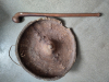 Der Lederschild hat einen Dm. von ca. 36 cm. Er hat eine Schnur zum Aufhängen und einen festen Griff auf der Rückseite. Er weist altersbedingte Gebrauchs- und Fehlstellen auf, s. Fotos.