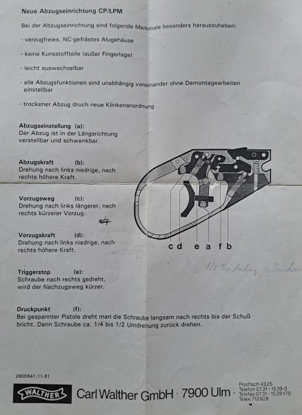 Die Pistole kann einfach auf Pressluft umgebaut werden. Umbausatz für den Umbau auf Walther LP400 gibt es in Internet.
