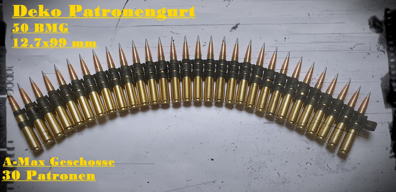 Auf dem Gurt sind 30 Dekopatronen montiert,alle Geschosse sitzen fest.