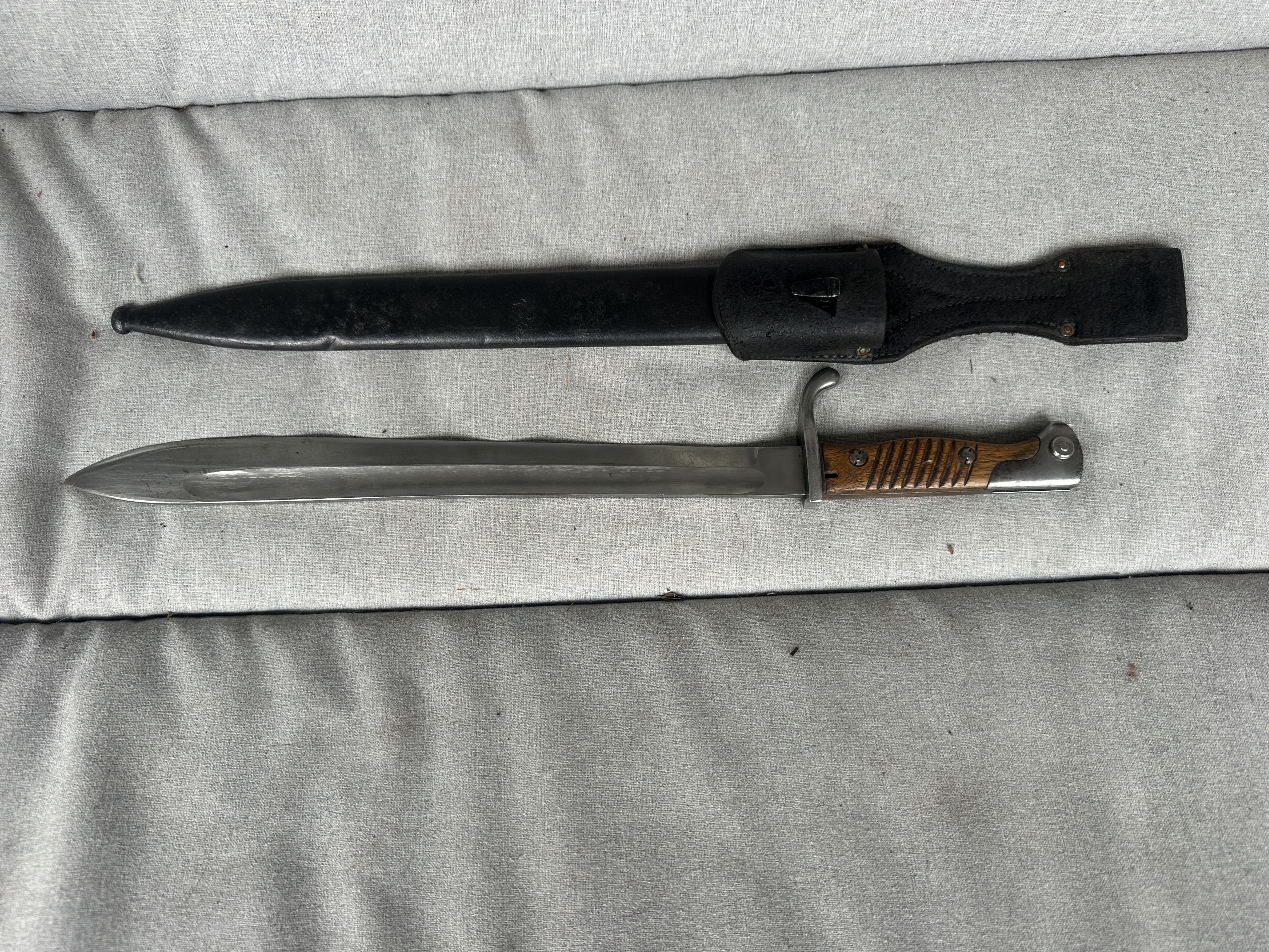 Ich biete ein Seitengewehr 98/05 mit Scheide und Koppelschuh , gekennzeichnet augenscheinlich mit 1914 im wirklich schönen Zustand an. Der Drücker ist gängig und Seitengewehr ist aufpflanzbar.
