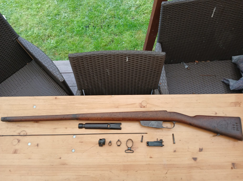 Sie bieten hier auf einen Carcano Gewehr Schaft mit Beschlägen Korn und Kimme. Der Schaft ist soweit sauber weist aber Gebrauchsspuren auf. Es handelt sich um eine Privatauktion, deshalb keine Garantie oder Rücknahme.