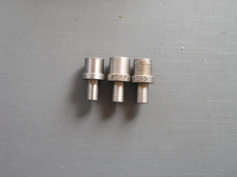 Los von zwei RCBS-Setzstempel Nr. 680, 575, einer ohne Herst.-Angabe Nr.: 421 für FN-Geschosse. Keine Korrosion. Privatauktion ohne Garantie, Gewährleistung oder Rücknahme. Versandkosten innerhalb Deutschlands ohne Inseln. Foreign bidders, please check carefully the shipping costs from Germany(DHL) to your own County to avoid a nasty surprise.