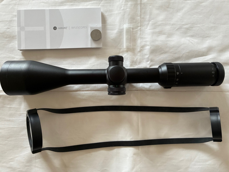 Zum Verkauf kommt ein gebr. Zielfernrohr der Marke HAWKE VANTAGE 4-12x50 L4A,bel. Absehen. Mittelrohrdurchm. 25,4mm, Gewicht 497gr., Länge 34,1mm.Linsen ohne Kratzer etc.