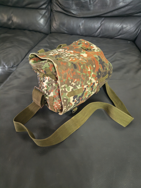 Gebrauchte, originale Militärtasche im Flecktarn-Muster. Robuste Ausführung mit verstellbarem Schultergurt und mehreren Fächern.