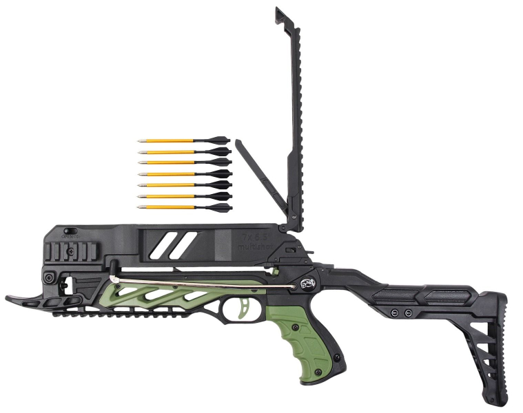 Bedingt durch den Knickspannmechanismus ist der Kraftaufwand beim Spannen reduziert. Eine längenverstellbare Schulterstütze sorgt für eine stabile Schussposition. Der Vordergriff ist abnehmbar und unterstützt die Handhabung. Vier Picatinny-Schienen (oben, unten und seitlich) ermöglichen die Montage von Zubehör wie z.B. Zieloptiken