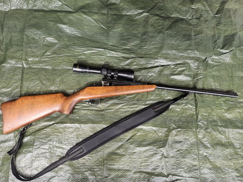 Verkaufe eine seltene Büchsflinte mit den Kalibern .22lfb und 9mm Flobert. Die Waffe hat einen Hahn zum Spannen und an diesem ist auch ein Hebel an dem der zu schließenden Lauf gewählt wird. Das Zielfernrohr und der Gewehrriemen gehören zur Auktion.