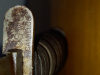 Die Klingenoberseite ist angeschliffen, Lederringe wackeln etwas, es sei denn man befeuchtet sie,