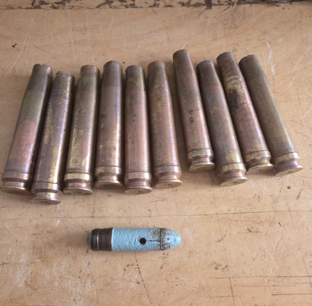 10 Messing Hülsen und eine Minen Granate 2cm Frei von allen Gefahr Stoffe zustande siehe Bilder