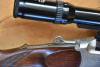 Wegen Überbestand kommt meine Blaser Bockbüchsflinte 700/88 im Kaliber 7X65R und 12/70 zur Versteigerung. Es handelt sich eigentlich um eine Standardausführung. Im Jahr 2005 wurde durch die Fa. Blaser wegen eines Nickelschadens der Systemkasten ausgetauscht und Luxusseitenplatten (Arabesken) am neuen Kasten angebracht. In den neuen Systemkasten wurde bereits das Schlosswerk der aktuellen BBF 95 eingebaut. Dies ist am Spannschieber und an den Abzügen erkennbar (kein Knopf mehr für das Lösen des Spannschiebers und keine Verstellschrauben für die Abzüge). Nach Auskunft der Fa. Blaser wurden diese Systeme in der Entwicklungsphase der BBF95 zunächst in den Schlosskasten der BBF 700/88 hineinkonstruiert. Daher Unikat. Die Waffe verfügt weiterhin über eine Gummischaftkappe am Schaftende und ein Pistolengriffkäppchen mit Keilerkopf. Der Kugelabzug der Waffe wurde durch die Fa. Jakele auf 600g einreguliert. Auf der Waffe ist mittels Blaser Schwenkmontage ein ZF Schmidt&Bender 2,5-10X56 mit Leuchtabsehen L3 (feines Kreuz mit Leuchtpunkt in der Absehenmitte) montiert. Der abgebildete Tageriemen und ein passender Mündungsschoner gehören ebenfalls dazu. Waffenpass ist ebenfalls vorhanden. Die Waffe schießt mit Norma Vulkan Streukreis von 2cm (5Schuß/Abkühlung zwischen den Schüssen). Technischer Zustand von Waffe und ZF ist einwandfrei. Es finden sich nur ganz geringfügige, altersentsprechende Abnutzungerscheinungen (Leichter Abrieb der Brünierung am vorderen ZF-Montagering). Restmunition wird dazu gegeben.