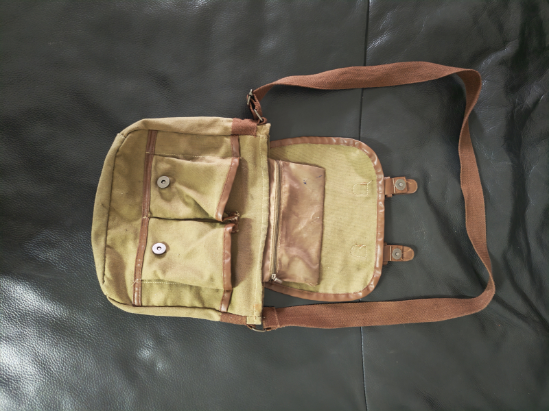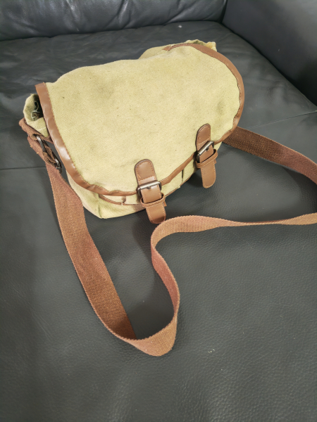 Alte Militär-Umhängetasche aus robustem Canvas mit Lederdetails. Klassisches Design, ideal für Sammler, Outdoor oder Alltag.