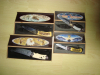 Ich biete noch an: 4 Sammlermesser in Echtholzschatulle, leicht angestaubtes Innenleben, war jahrelang in der Vitrine, war Geschenk damals zum runden Geburtstag. Klingen ohne Stempelung, die Griffe sind nicht aus Elfenbein, sondern aus Kunstoff, trotzdem ein "Hingucker".