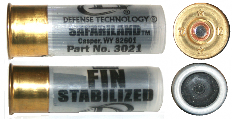 Polzeipatrone Kaliber 12 mit flügelstabilisiertem Weichgummigeschoss
