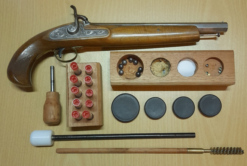 ich verkaufe hier mein Vorderlader – Pistolen Set komplett im Kaliber 10mm (.36) von MENDI mit reichlich an Gravur. Zu diesem Set gehört alles was sie auf dem Bild sehen – Die Pistole – den Block inkl. 10 Pulverröchen – den Ladeblock inkl. Inhalt und Verschlussdeckel – Kugelstarter – Ladestock –Putzstock mit Bürste. Die Pistole hat keinen gezogenen Lauf (ist Glatt) und schießt trotz ihres alters sehr gut. Ein Ordentlicher Spanischer Beschuss ist vorhanden. Bitte sich die Bilder ansehen sie sind Teil der Beschreibung, sie kaufen das was sie sehen, auf Wunsch kann ich aber noch welche zusenden. Hier noch ein Hinweis aus gegebenem Anlass da es Mode geworden ist nach dem Erwerb sich zu Beschweren – Sie ist Alt – ist nicht Makellos – hat sicherlich den einen und anderen Fehler – ich beschreibe hier nicht jede Kleinigkeit, Fehler, jeden Markel. Fragen stellt bitte vorher wer damit nicht einverstanden ist bitte nicht bieten. Und zum Schluss noch das Übliche das schreibt das neue EU-Gesetz vor, nachfolgenden Vermerk aufzuführen: "Ich verkaufe bei meinen Auktionen ausschließlich Gebrauchtware, sofern nicht anders beschrieben. Diese Waren sind aus meinem Privatbesitz und ich verfolge mit meinen Auktionen keinerlei gewerbliche Zwecke. Eine Rechnung gibt es hierfür nicht. Da mittlerweile auch Privatverkäufer ein Jahr Gewähr leisten müssen, wenn sie das nicht ausschließen, erkläre ich hiermit ausdrücklich, dass ich für meine privat versteigerten Artikel keine Gewährleistung und keine Rücknahme übernehme. Mit der Abgabe eines Gebotes erklären Sie sich ausdrücklich damit einverstanden, auf die Ihnen nach neuem EU-Recht gesetzlich zustehende Gewährleistung/Garantie bei Gebrauchtwaren völlig zu verzichten. Somit ist eine Sachmängelleistung, Garantie - Rückgabe - Umtausch – Nachverhandlungen und der gleichen ausgeschlossen.