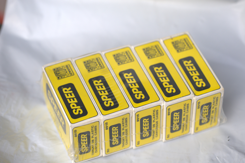 250 Plastikhülsen (5 Packungen à 50 Stück, neu, originalverschweißt) der Firma SPEER für Kaliber .38 special