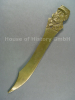 Französischer Brieföffner aus Messing zur Erinnerung an den 1.Weltkrieg des Künstlers "E. Carlier", in der Form eines Säbels, Klinge mit Gravur "Bussaco", Griff in Form eines französischen Soldaten mit Käpi auf und eine Pfeife rauchend, darunter die Jahresgravur "1914-1918", Länge ca. 25,5 cm, leichte Gebrauchsspuren, dekorative Arbeit des bekannten französischen Bildhauer Emil Carlier (1849-1927)