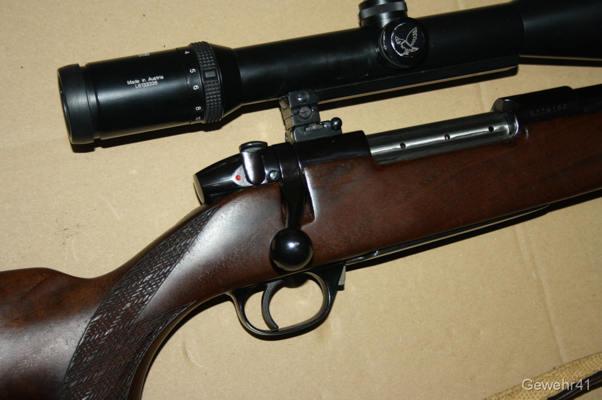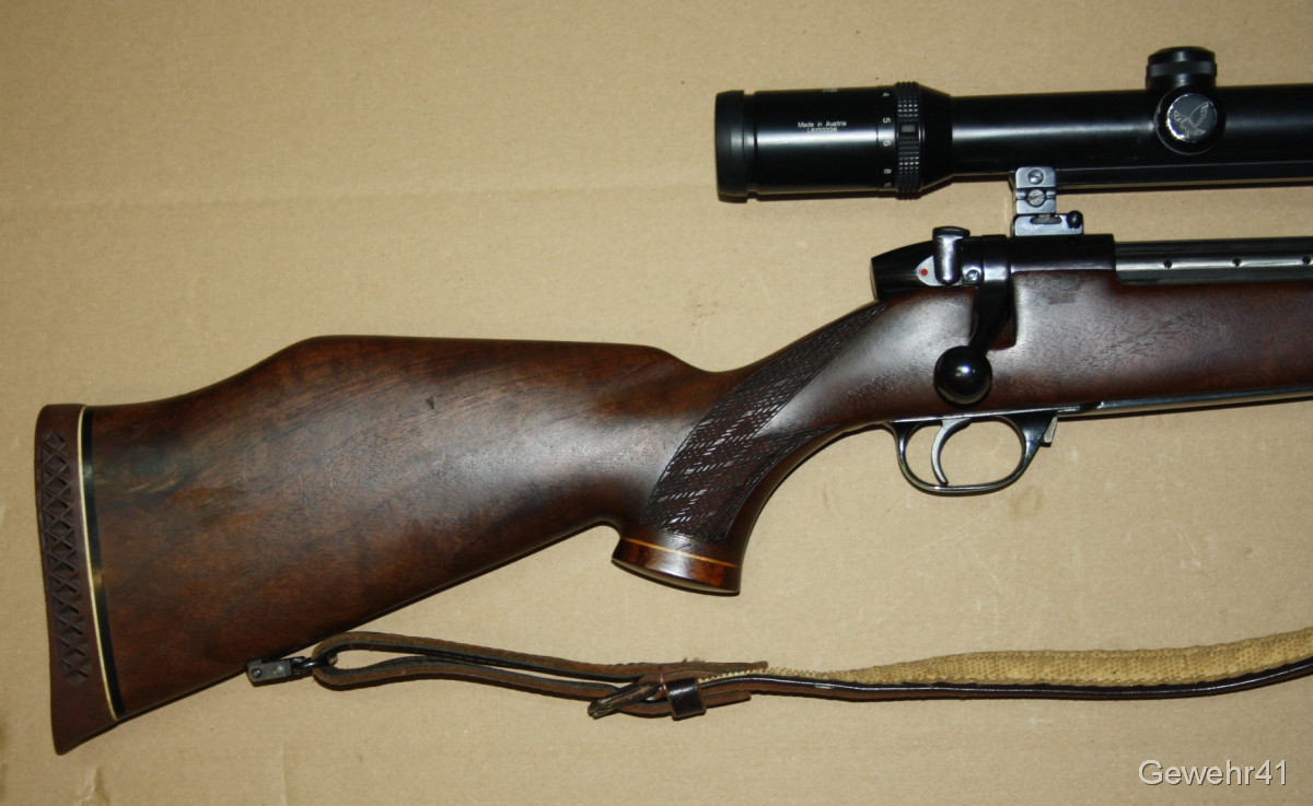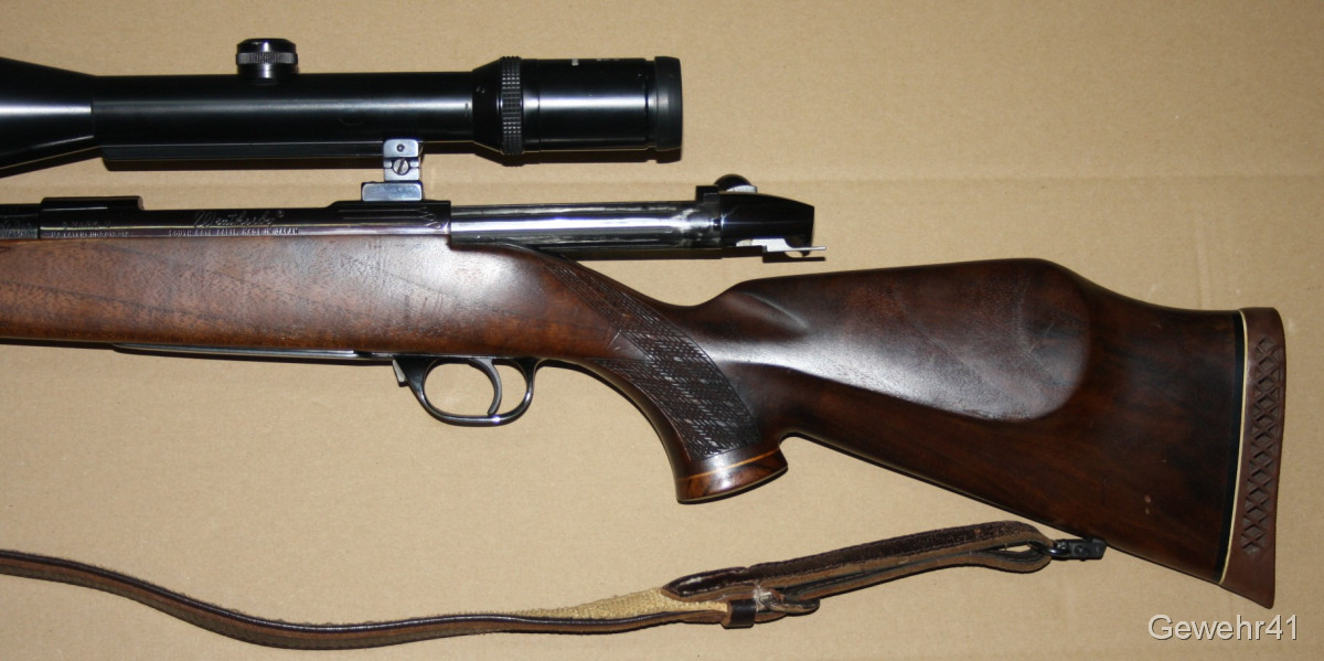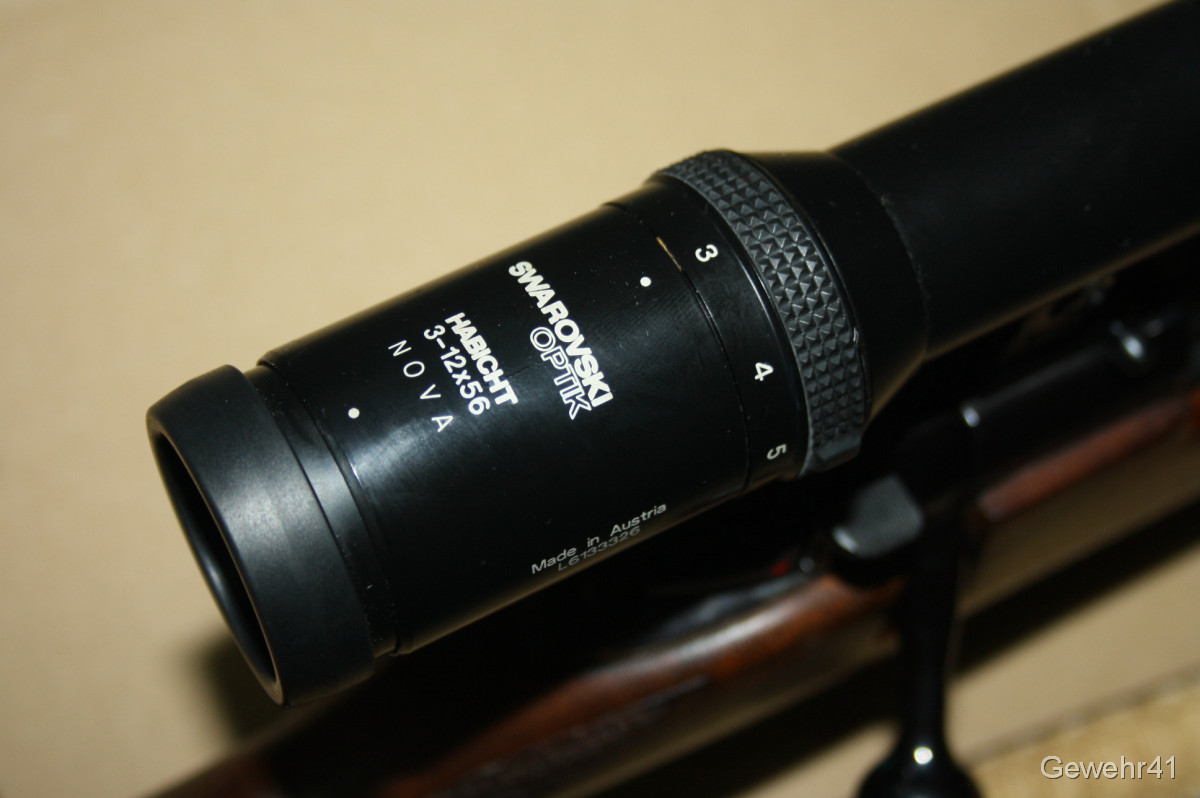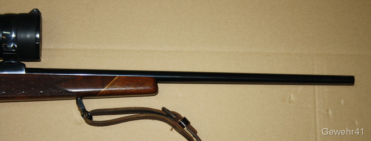 Aus gepflegtem Erstbesitz stammt dieser Weatherby "Mark V" Repetierer im starken Kaliber .300 Weatherby Magnum. Montiert ist ein ZF Swarowski Habicht 3-12x56. Die Büchse ist im gepflegtem Zustand mit nur leichten Gebrauchsspuren. Lauf und Funktion einwandfrei. Lauflänge 59cm, Schaftlänge 34,5cm, Gesamtlänge 112cm.