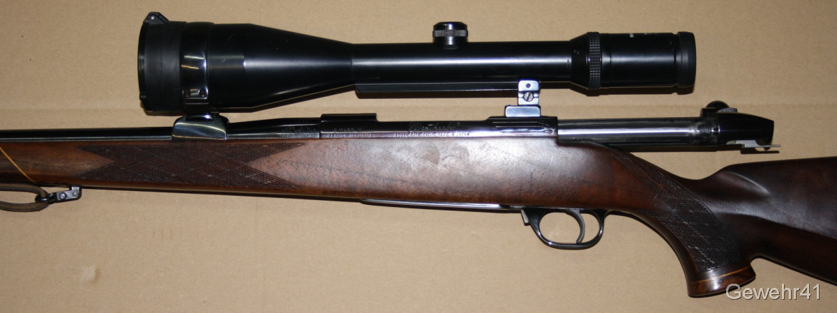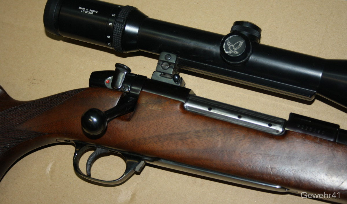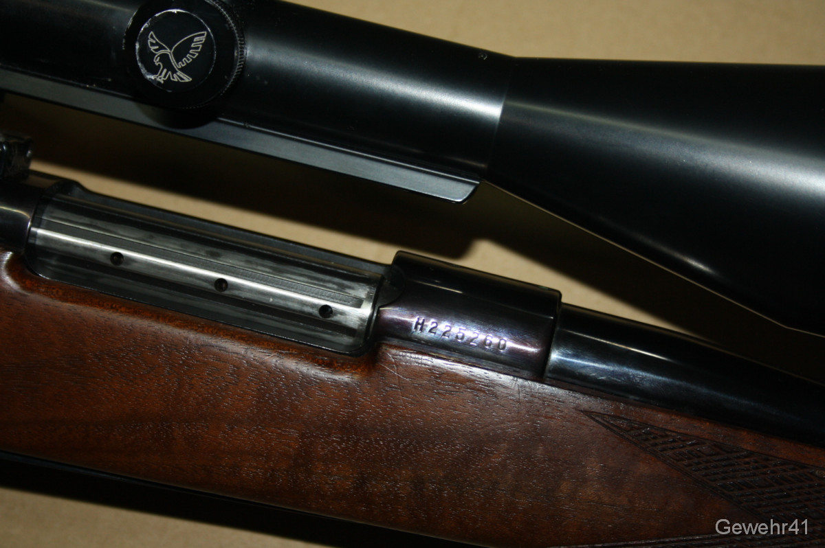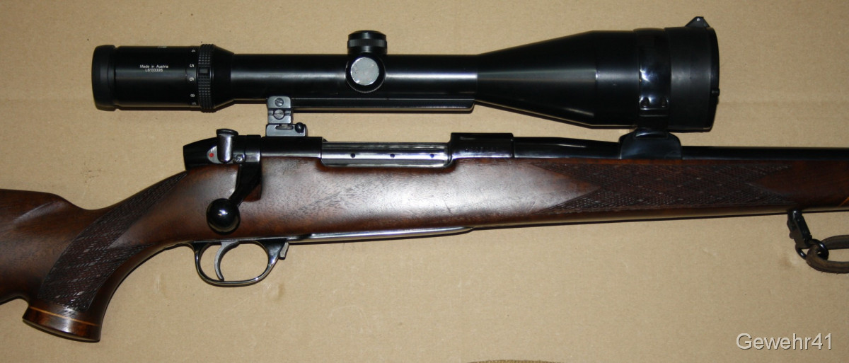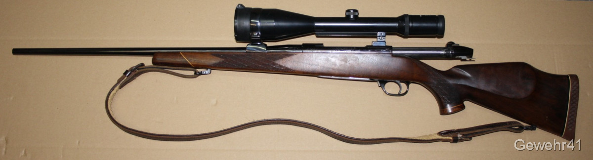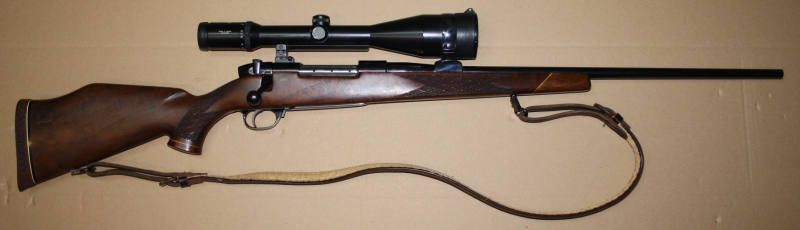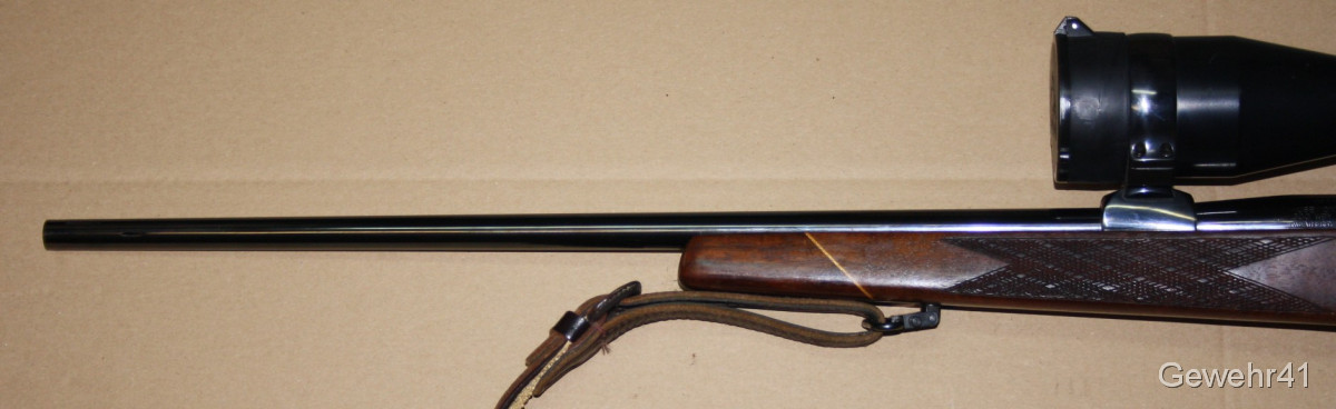 Aus gepflegtem Erstbesitz stammt dieser Weatherby "Mark V" Repetierer im starken Kaliber .300 Weatherby Magnum. Montiert ist ein ZF Swarowski Habicht 3-12x56. Die Büchse ist im gepflegtem Zustand mit nur leichten Gebrauchsspuren. Lauf und Funktion einwandfrei. Lauflänge 59cm, Schaftlänge 34,5cm, Gesamtlänge 112cm.