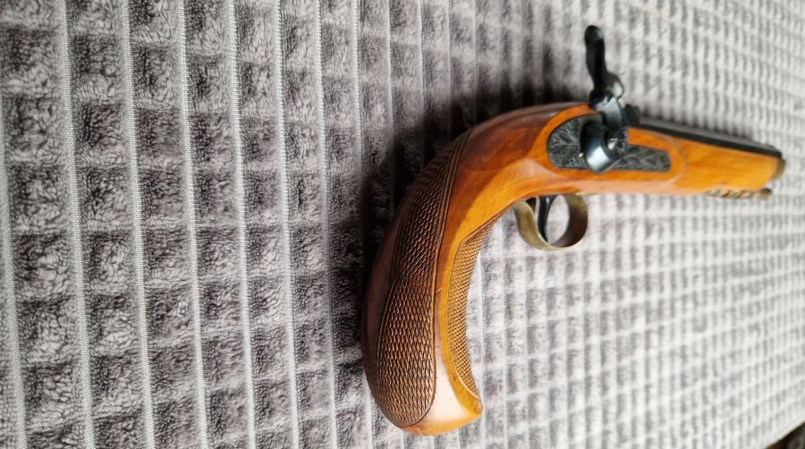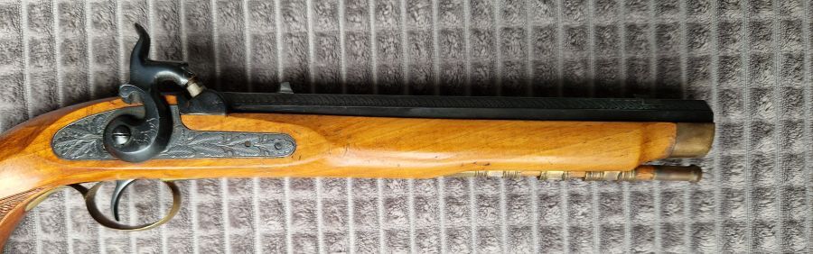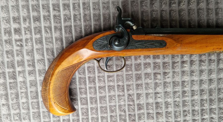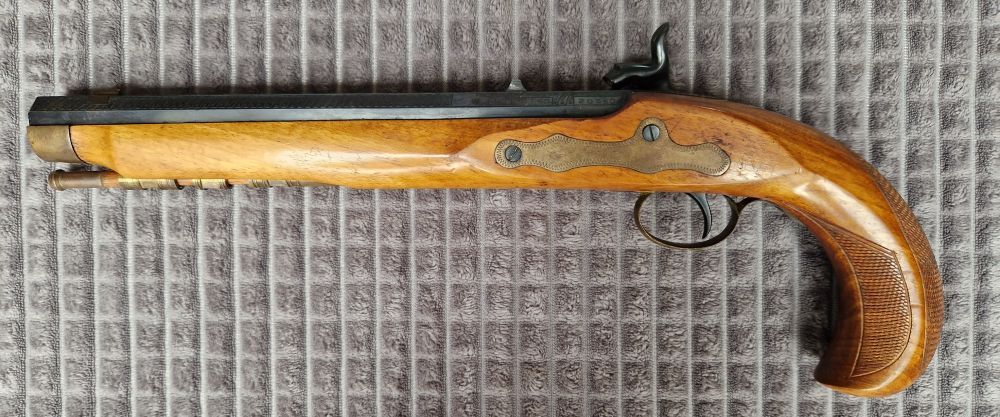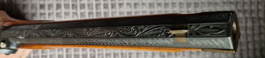 Ältere Perkussions Pistole (Replika) verziert, Cal. 11,5 mm.