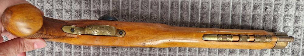 Verzierte Messinggarnitur. Holzladestock mit Dopper.