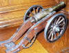 Aus Nachlass: dekorative Modellkanone Louis XIV, ca. 30 cm lang, Höhe ca. 12 cm Breite ca. 14 cm, Rohr innen 10 mm. Gussmaterial, nicht zum Schiessen vorgesehen. Auf den Fotos wirkt die Kanone verstaubt, aber das ist das einfallende Licht beim Fotografieren. Die Räder haben Laufreifen und Achsteile offenbar aus Zinn. Keine brüchigen oder lose Teile. Ein schönes Stück für den Schreibtisch oder für die Vitrine. Abholung möglich, versicherter Versand mit DHL.