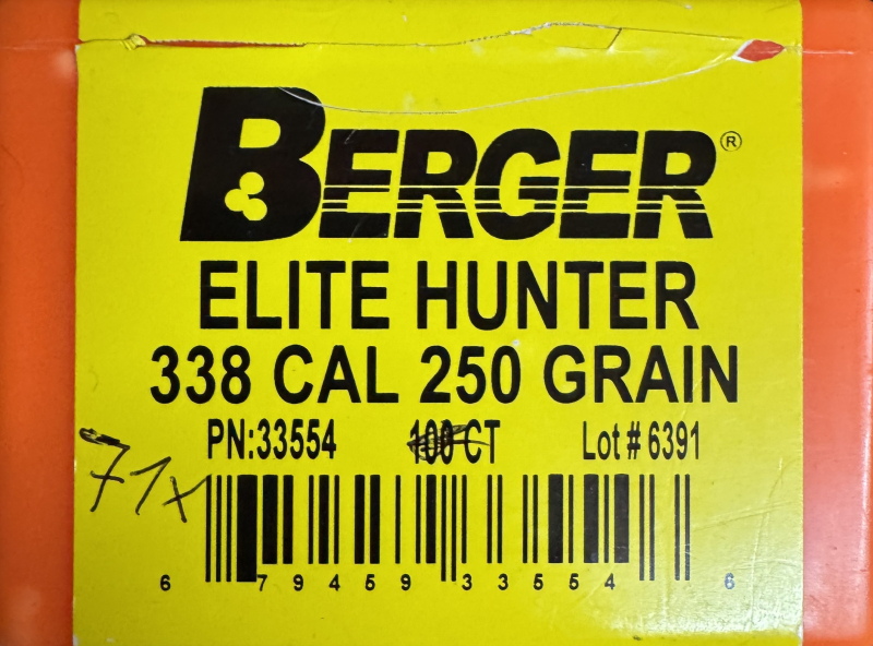 zum Verkauf stehen aus Wiederlader-Nachlass 71 x Geschosse von Berger Elite Hunter .338 - 250 grain schwer.