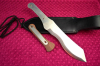 Die beiden Holzschalen am Griff lassen sich - purer Luxus - einfach durch Verschieben eines Knopfes abnehmen, das Messer besteht dann nur noch aus einem stabilen Stück 4034-Stahl von 4mm Dicke, und wiegt noch 330g.