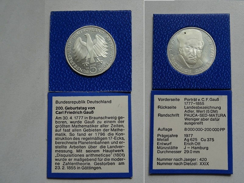 Zur Versteigerung kommt 1 Sück Geldmünze 5 DM, Gauß auch Silber. War polierte Platte. Schöner Zustand. Alles Weitere entnehmen Sie bitte den Bildern. Verkauf aus Ankauf ,Erbschaft oder Komission. wird das Garantie- u. Rückgaberecht für diesen ausgeschlossen. Käufer trägt Versandkostenpauschale von 5,50 Euro. Vorbesichtigung nach Absprache erwünscht. Korospontenz und Versand nur Freitag, Samstag und Sonntag. Firma Vogel GbR, Waffenhandel, Oberschweinach 1, 91413 Neustadt.