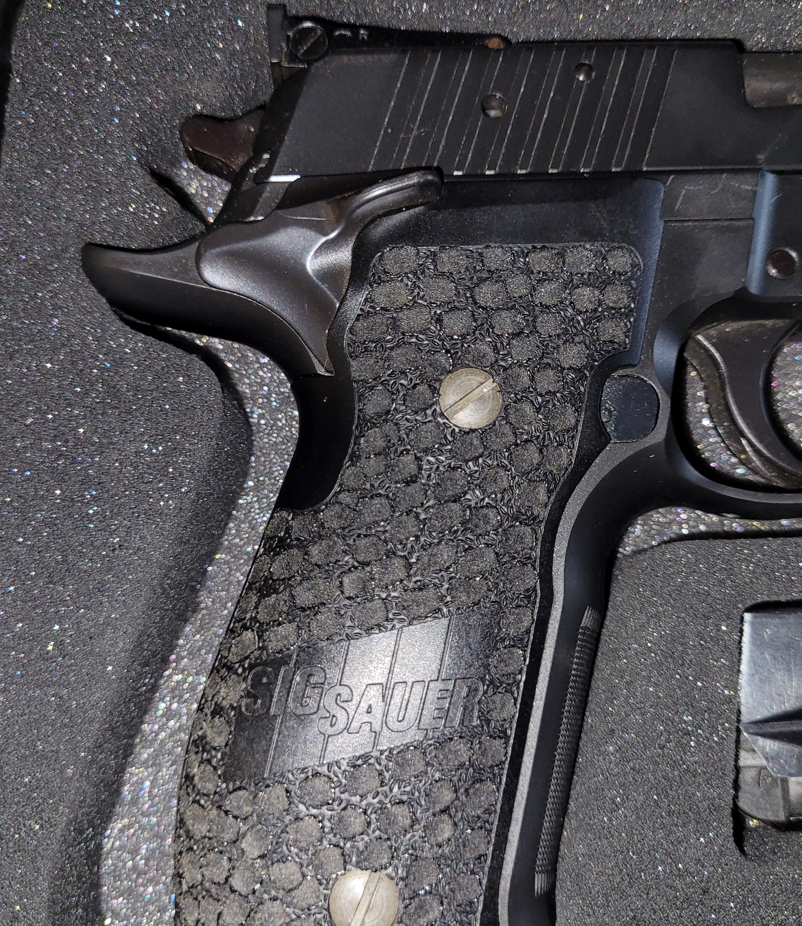 Punzierte Griffschalen, super griffig! Original Griffschalen sind ebenfalls dabei.