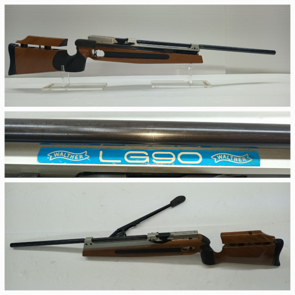 Walther LG90 Match Luftgewehr im Kal.4,5mm Diabolo. Das LG wurde mit Zielfernrohr bis Dato geschossen. (Field Target) Brünierung / Schaft (Rechts System) noch gut Erhalten ohne Brüche. Es hat eine 11mm Schiene für Zielvorrichtungen bereits montiert. Keine sonstige Visierungen vorhanden. Schaftbacke und Schaftkappe sind verstellbar. Der Abzug geht Super leicht. So nun zum Negativen: Das LG benötigt eine Überholung, da das Diabolo den Lauf nicht verläßt. Somit NICHT Schussbereit und wird Ausdrücklich als Überholungsbedürftig/Defekt verkauft. Druck entweicht beim Spannen und der Bolzen in der Ladeklappe benötigt einen neuen Sprengring. Für alle Schrauber unter Euch ist das kein Problem.___BEI FRAGEN zum Artikel / Kauf ::: BITTE ::: TELEFON 07356-9509284.___