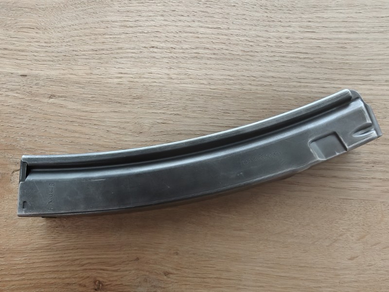 General information: For sale original and fully working HK MP5 30-round magazine. Featuring durable steel construction with a blued finish, this factory magazine is designed for superior strength and lasting corrosion resistance in virtually any target-rich environment. The steel spring and anti-tilt metal follower ensure smooth, reliable feeding with proper cartridge alignment in high-stress target and defensive environments. The magazine is surplus and it has small signs of wear that doesn't affect it's function and reliability. Magazine has stamps 9mmx19 and Made in Germany to prove it's authenticity. /////// Shipping & Legal Information: Shipping is from Finland. The exact shipping costs will be calculated according to the destination address and desired shipping method. Combined shipping for multiple items is only possible after prior agreement. Private sale – no warranty or returns!