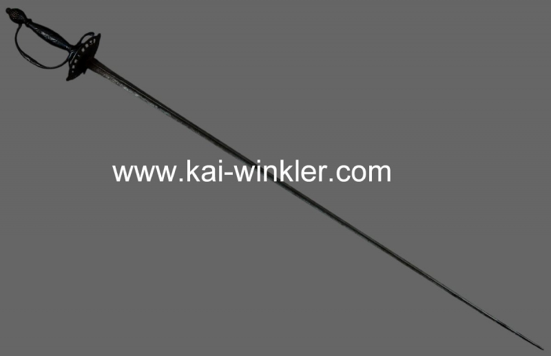 Galanteriedegen, Tula um 1790, Dreikantstichklinge mit floralen Zierätzungen, gebläutes Stahlgefäß mit diamantierten Ziernieten und Dekor, ohne Scheide, sehr schöne dekorative frühe Waffe, selten