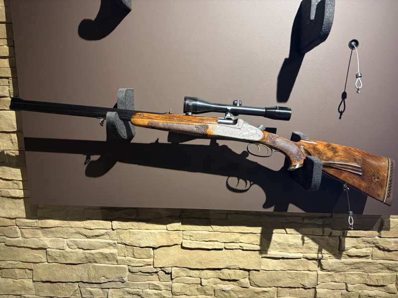 Die Büchse hat vergoldete Abzüge mit französischem Rückstecher, lange handgravierte Seitenplatten, Sicherung auf dem Kolbenhals.