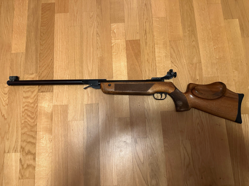Zum Verkauf steht ein Walther Matchluftgewehr aus den 50-er Jahren, Modell LGV. Das Gewehr ist stark gebraucht, funktioniert aber tadellos. Unten am Griff ist die Schrift "Gmünd" angebracht. Wie immer schliesse ich auch bei dieser Privatauktion jede Gewährleistung aus.