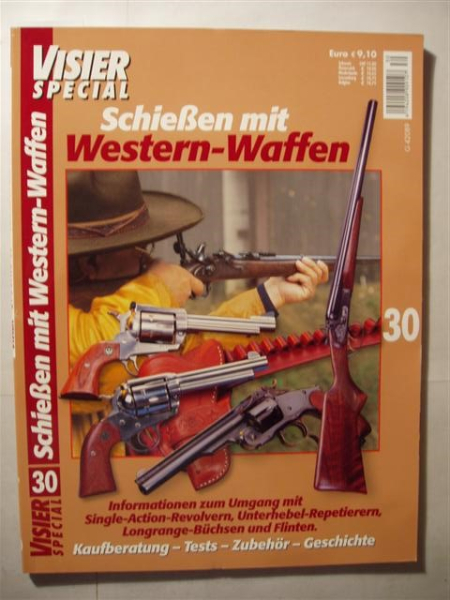 Eine Rarität für Western-Schützen,Sammler und Freunde der Waffentechnik :+++ angeboten wird das VISIER - SPEZIAL Nr. 30 -- ** Schießen mit Western - Waffen ** -- Das große Sonderheft mit Informationen zum Umgang mitt Single-Action-Revolvern, Unterhebel-Repetierern, Longrange-Büchsen und Flinten. ++ Ein Ratgeber für -- Kaufberatung -- Tests -- Zubehör -- Geschichte +++ Es ist ein Band - mit 115 Seiten - von 2003 (sicher schon eine absolut seltene Rarität)+++ Das Heft ist gebraucht ; befindet sich aber - bis auf eine sehr kleine Beschädigung am Heftrücken - in einem sehr guten Zustand +++ Der Versand erfolgt als Großbrief mit DHL (unversichert) ; die Versandkosten für Deutschland übernimmt der Verkäufer. +++ Bieter aus dem Ausland bitte Versandkosten vor Gebot erfragen.+++ Versandrabatt möglich, sehen Sie auch meine anderen Angebote.+++ Privatverkauf, daher keine Gewährleistung, Garantie oder Rücknahme.+++ Fragen bitte mailen.