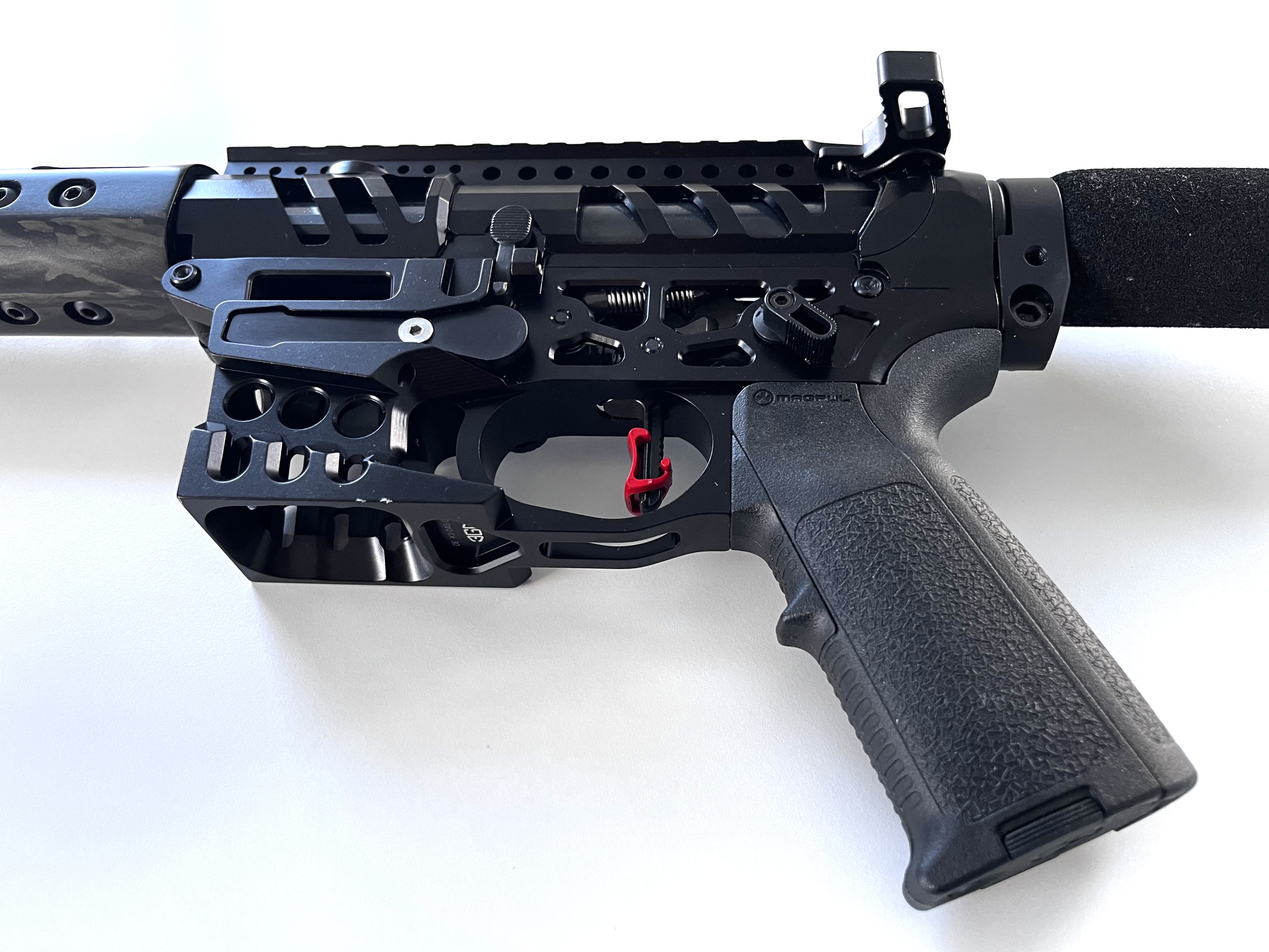 - Barrel | 12.5"Präzisionslauf /hammer forged and nitrided - KYNTEC | Hydraulic recoil buffer system RB5020SS short stroked or RB5016HD - JP RIFLES | Recoil buffer spring / centerless grounded and polished - HIPERFIRE | Competition Trigger 24C / short travel - BREKKE | 4″ CompXtension PCC Compensator / nitrided - BREKKE | 14″ Maxamundi Smoke Composite Handguard solid / 35-50 carbon fiber - BLACKOUT DEFENSE | Stryker charching handle / ambidextrous - DOUBLESTAR | ACE Ultralite Stock / light and solid soft foam overtube - MAGPUL | MIAD Gen1.1 Grip / Reinforced polymer with anti-slip texture - Gewicht ohne Magazin: 2641 g (wie abgebildet)