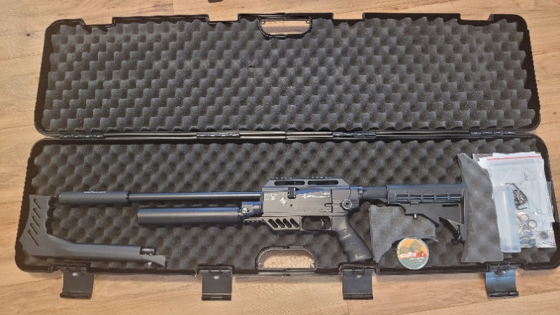 Die Waffe wurde nur wenig benutzt und befindet sich in einem Top-Zustand. Im Lieferumfang enthalten sind der Koffer, Waffe, Munition, Zubehör und ein Schalldämpfer.