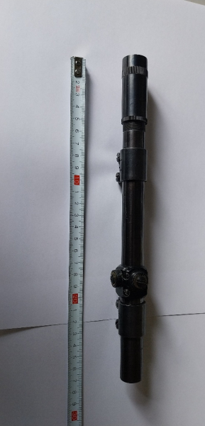 Zielfernrohr mit Klemmhalterung für alle Prismen von 11 bis 13 mm. Massive Ausführung, kein Kunststoff. Klare Optik. Abdeckkappen für die Einstellung des Absehens fehlen.