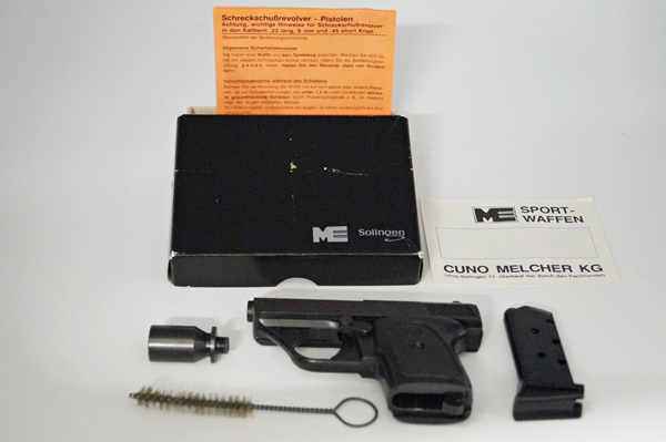Wir bieten Ihnen hier eine wunderbare kleine SRS Pistole aus dem Hause Melcher. Modell ME 8 Detective im Kaliber 8mm Knall. Die Waffe befindet sich in sehr guten Zustand. Sie kommt in der OVP mit dem abgebildeten Zubehör. Top führig. Verschwindet in jeder kleinen Hand. Zugreifen. Schauen Sie sich gerne die Bilder an. Fragen stellen Sie bitte rechtzeitig vor Auktonsende. Für mehr Fotos bitte anschreiben. Bei fehleneden Erlaubnissen kann die Waffe problemlos drei Monate kostenfrei bei und gelagert werden. Gerne können die hier angebotenen Waffen persönlich in unserem Ladengeschäft abgeholt werden. Gebrauchtwaffen können bei entsprechender Vorplanung evtl. auch in einer Schießanlage in der Nähe probegeschossen werden. Dekoelemente gehören nicht zum Auktionsgegenstand. Alle Bezahldaten finden Sie in der ersten Egun Email. Export nur über einen Drittanbieter. International Bidders are welcome. Ask before bid for tradingrules.
