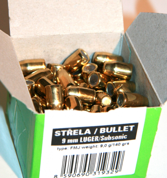 Für Faustfeuerwaffenpatronen. Rundkopfgeschosse mit Bleikern und Tombakummantelung.