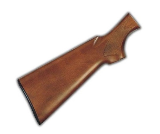 Pistol stock for shotgun type Benelli Centro gauge 12, varnished and including recoil pad in bakelite. For conrod tube mm 273. The stock is straight and the verticle drop at heel is made by the metal plate. The stock is available with a curvature of 3,5 mm. Made in Walnut wood dried 16%.