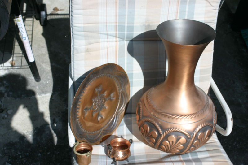 Aus grossem Nachlass---s Foto-- wie neu---Höhe Vase ca 50 cm - Dia Teller ca 30 cm--alles vollkupfer bis auf die kl- Beschlagteile bei den beiden kleinen stücken--ges.Gewicht ca 3,4 kg das ist ja auch mal ein wert--