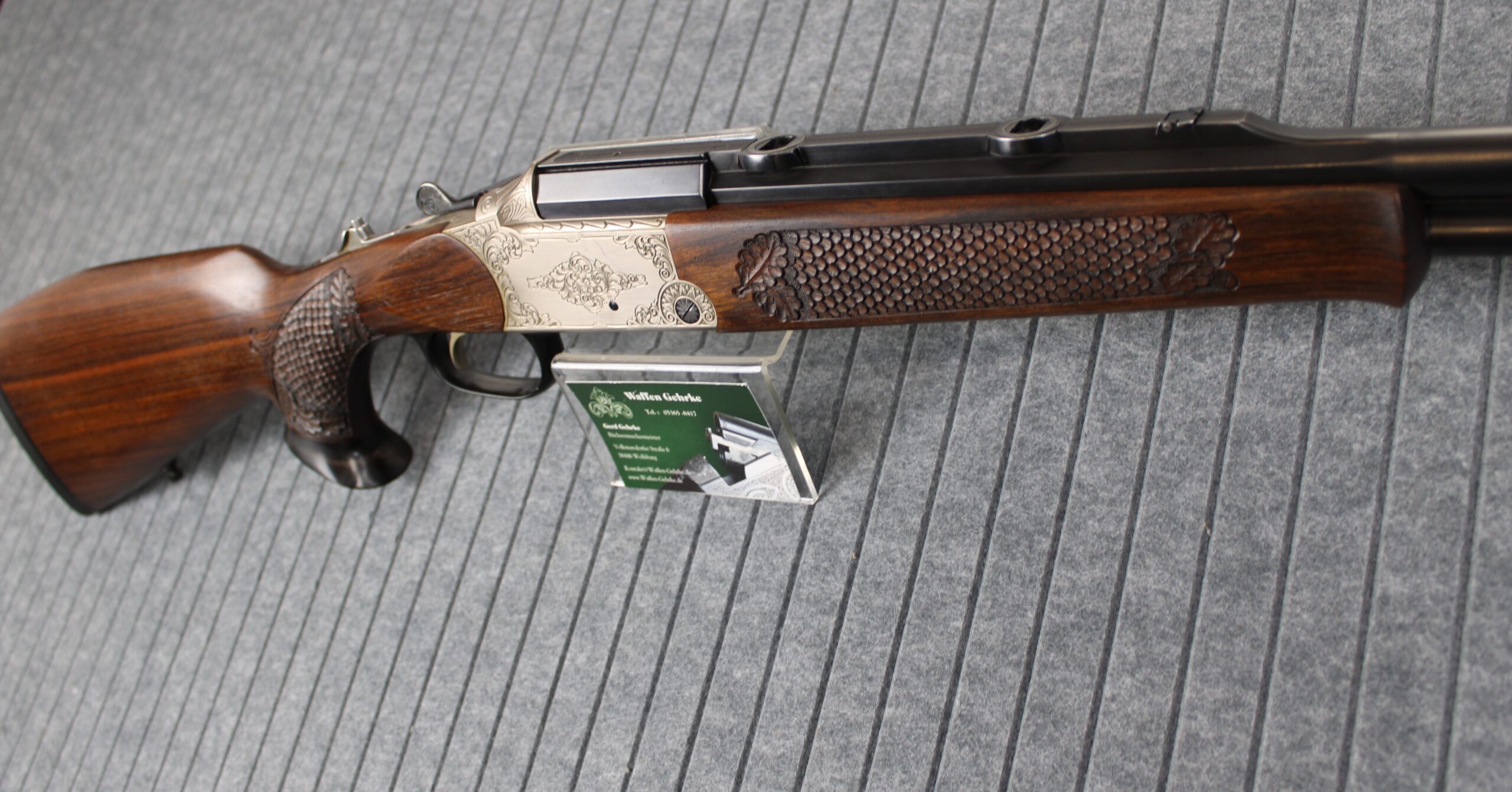 Zustand 1- sehr gepflegt Kaliber: .30-06 Spr. Chemisch gereinigt und Bleifrei eigeschossen ( RWS HIT) Handspannung Einstellbarer Einabzug - wunderbar trocken Oberer Lauf verstellbar 2 Schwenkmontage Basen Schönes Schaftholz mit Schuppenfischhaut und dezenten Verschneidungen Kaisergriff in Horn Neues GPO ( German Precision Optics) Spectra 8X 1-8X24i Lauflänge:620mm Schaftlänge:360mm Gesamtlänge:1060mm