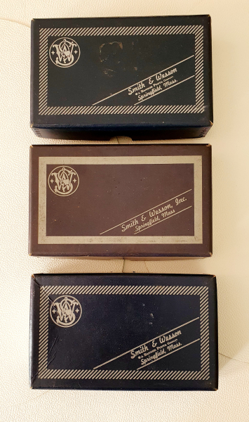 Verkaufe 3 ältere original Schachteln vom Smith &Wesson Revolver Mod. M36 bzw. M60. Die boxen sind ihrem Alter entsprechend in gutem Zustand. Leichte Gebrauchsspuren sind natürlich vorhanden, aber es gibt keine Beschädigungen. Zum Angebot gehören 2 Gebrauchsanweisungen sowie ein Satz originale Holzgriffschalen. Den Zustand entnehmen Sie bitte den Fotos. Diese sind Bestandteil der Auktion.