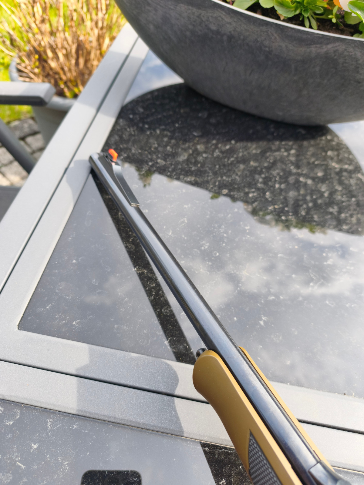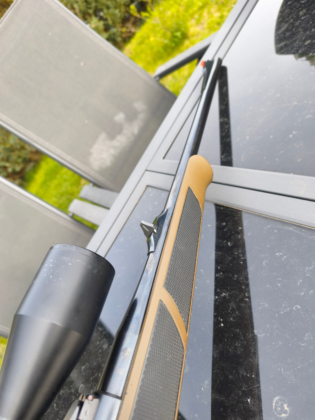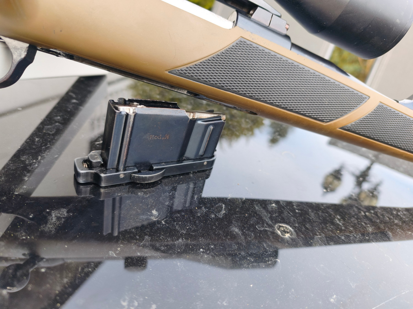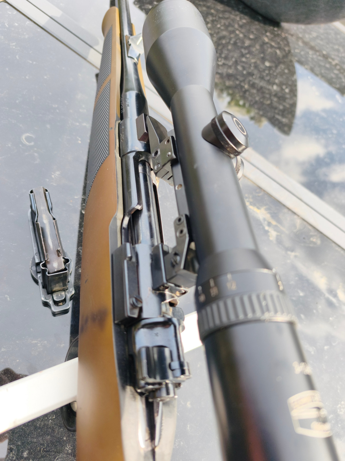 Ein besonderes Highlight ist der fein einstellbare Abzug (vermutlich Recknagel oder Timney) in Kombination mit einer Pirschsicherung.