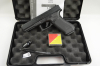 Glock Modell 917 im originalen, nummerngleichen schwarzen Kunststoffkoffer, komplett mit Beschreibung, benutztem Pyrobecher, Reinigungsbürste, 10 Schuß Wadie Pfefferpatronen. Kein weiteres Zubehör!
