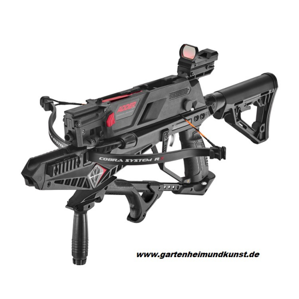 Die neue Revo 7 Armbrust bei uns ! Verkaufe die neueste Armbrust Revo 7 mit in der Handhabung verbesserten Repetierspannsystem durch den Griff mit dem neuen 7 Schuss "Magazin" schnell wechselbar und auch weitere als Zubehör erhältlich ! Technische Daten : Repetier "Schnell-Spannsystem" Ausstattungsvariante mit verstellbarer Schulterstütze inklusive 7 Pfeilen bzw Carbon - Bolzen Sehnenwachse Schutzbrille , Visiereinheit "Red Dot "beleuchtet wie bei der Adder und Ersatzsehne. Beschreibung in Deutsch und English.