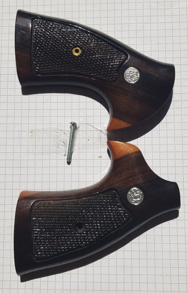 Ein paar griffschalen für S & W. Hartbolz. "Round Butt " ( rundes rahmen ) K/L Frame.Neu. Komplett mit Schraube. Keine beschädigungen. . Photo am tageslicht gemacht daswegen auch Schatten. Weitere Bilder, Fragen etc. gerne jederzeit. Versand mit Sendungs Nr. und versichert oder auch nach Wunsch. Keine Garantie, umtausch oder rücknahme. Quadratische hintergrund Raster = 5mm. Mfg.