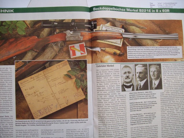 Für Waffenfreunde und Sportschützen/Jäger+++ angeboten wird ein Visier - Heft/SWM-Teil; mit einem sehr interessanten Beitrag für Jäger und Sportschützen ++ ** KÖNIGIN DER JAGD ** -- Merkels Bockdoppelbüchse B 221 E in 8 x 60 R -- Mit einer solchen Bockdoppelbüchse spielte man vor gut 70 Jahren in der jagdlichen Oberliga. In dem Beitrag (8 Seiten) erfahren Sie, warum das so war. Außerdem gibt es noch einen Bericht über das Kaliber 8 x 60 (R). +++ und es gibt noch weitere interessante Berichte - auch im SWM Teil - z.B. ein Testbericht (13 Seiten) ** Was leisten Schalldämpfer ? ** +++ Das Heft ist gebraucht, befindet es sich aber in einem sehr guten Zustand. +++ Der Versand erfolgt als Großbrief mit DHL (unversichert) ; die Versandkosten gelten nur für Deutschland.+++ Bieter aus dem Ausland bitte Versandkosten vor Gebot erfragen. +++ Versandrabatt möglich, sehen Sie auch meine anderen Angebote. +++ Privatverkauf, daher keine Gewährleistung, Garantie oder Rücknahme.o*1111+++ Fragen bitte mailen.