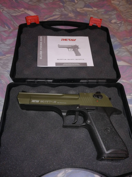 Biete hier eine Retay Big Fifty in schwarz/oliv mit Koffer und Zubehör! Nicht geschossen! Auf used Look getrimmt! Ptb 1075! Abschussbecher lässt sich nicht aufschrauben! egun ich-keine Versandkosten!